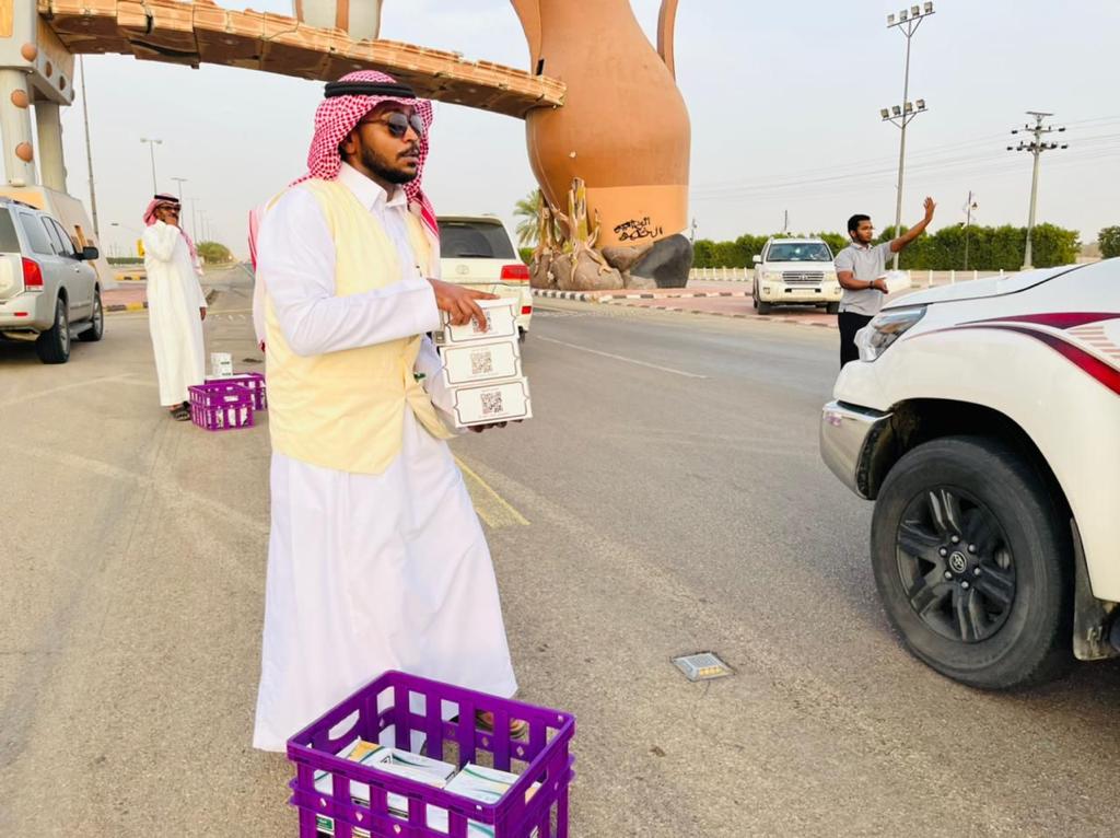 Through the eastern gate, the College of Engineering in Wadi Al-Dawasir, in cooperation with the Al-Bir Charitable Society in Al-Nuaima and the Social Development Committee in Al-Shurafa, distributed Iftar meals to travelers through the eastern gate of Wadi Al-Dawasir Governorate. The initiative lasted for two days during the last week of Ramadan. Through the initiative, the college sought to consolidate volunteer work, Devote importance to charitable work, and strengthen human ties.