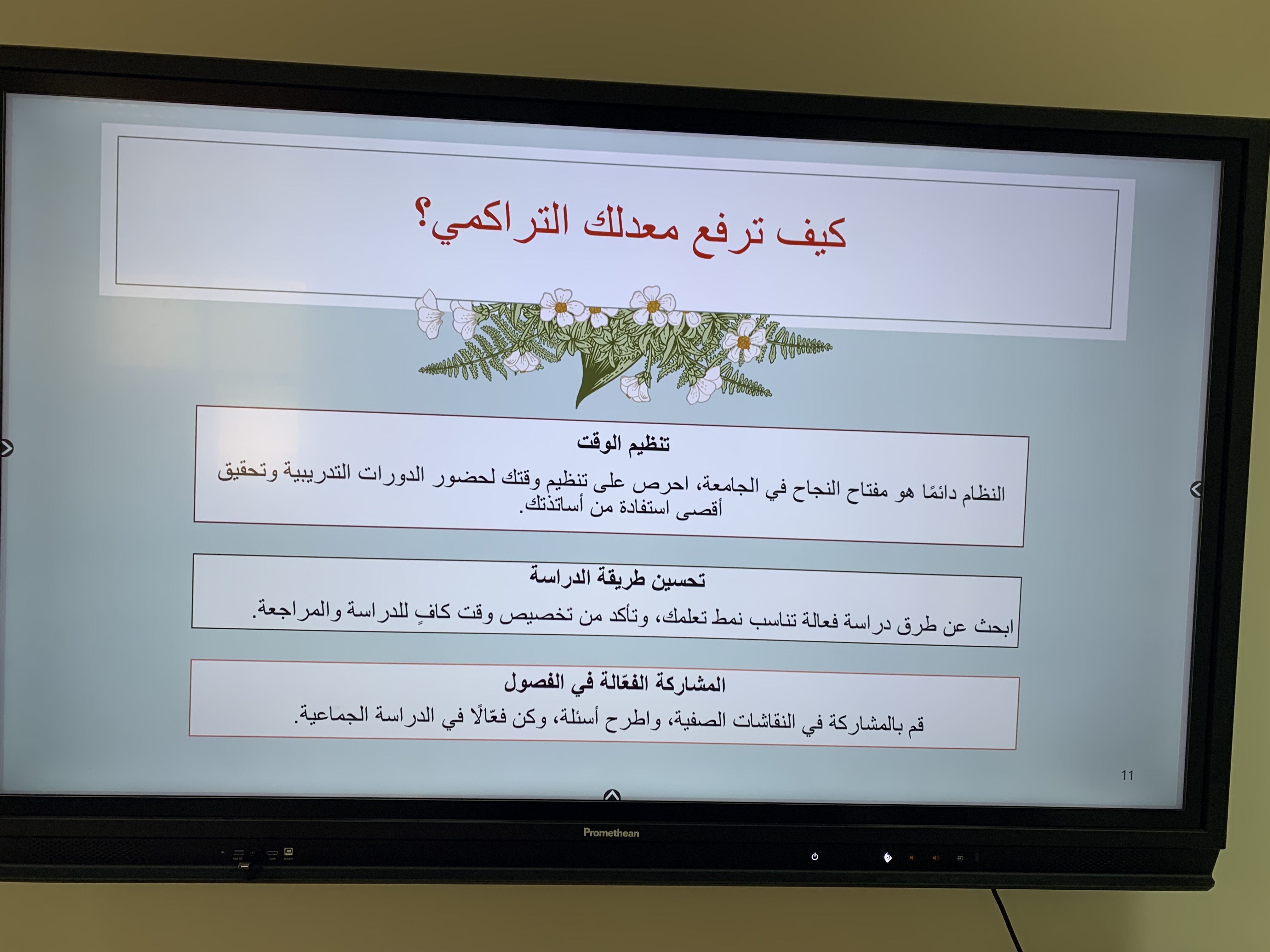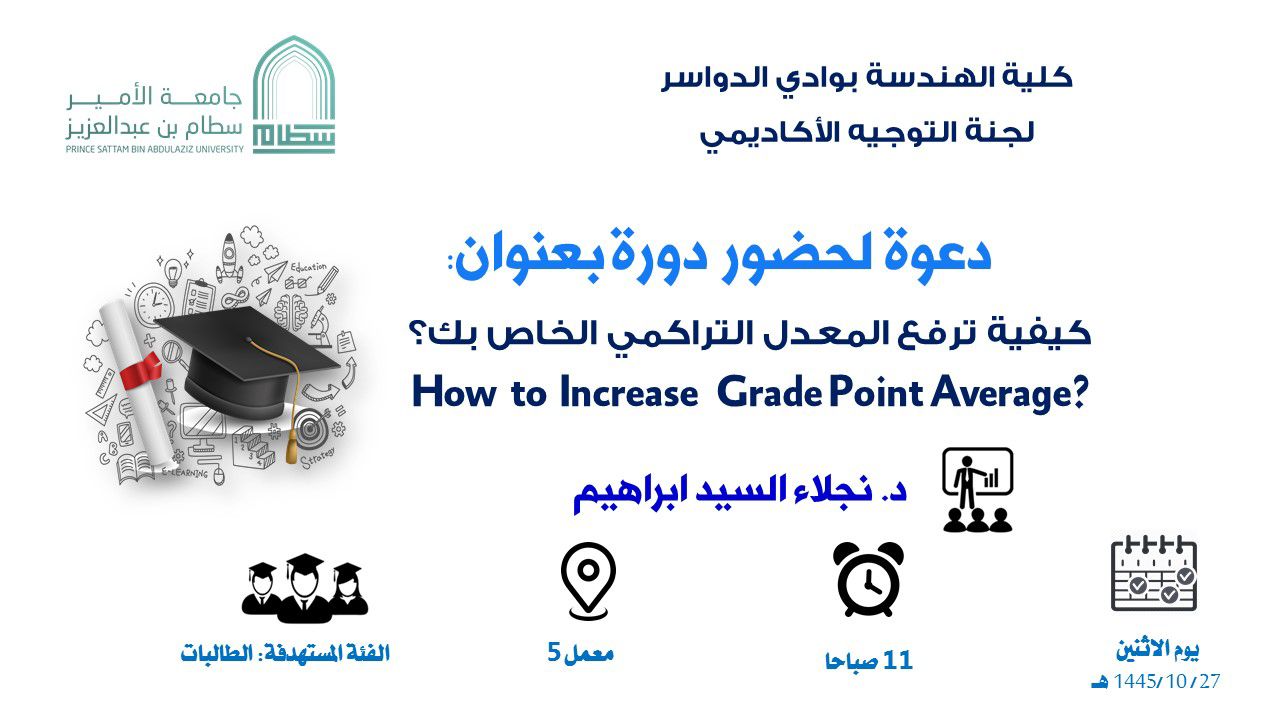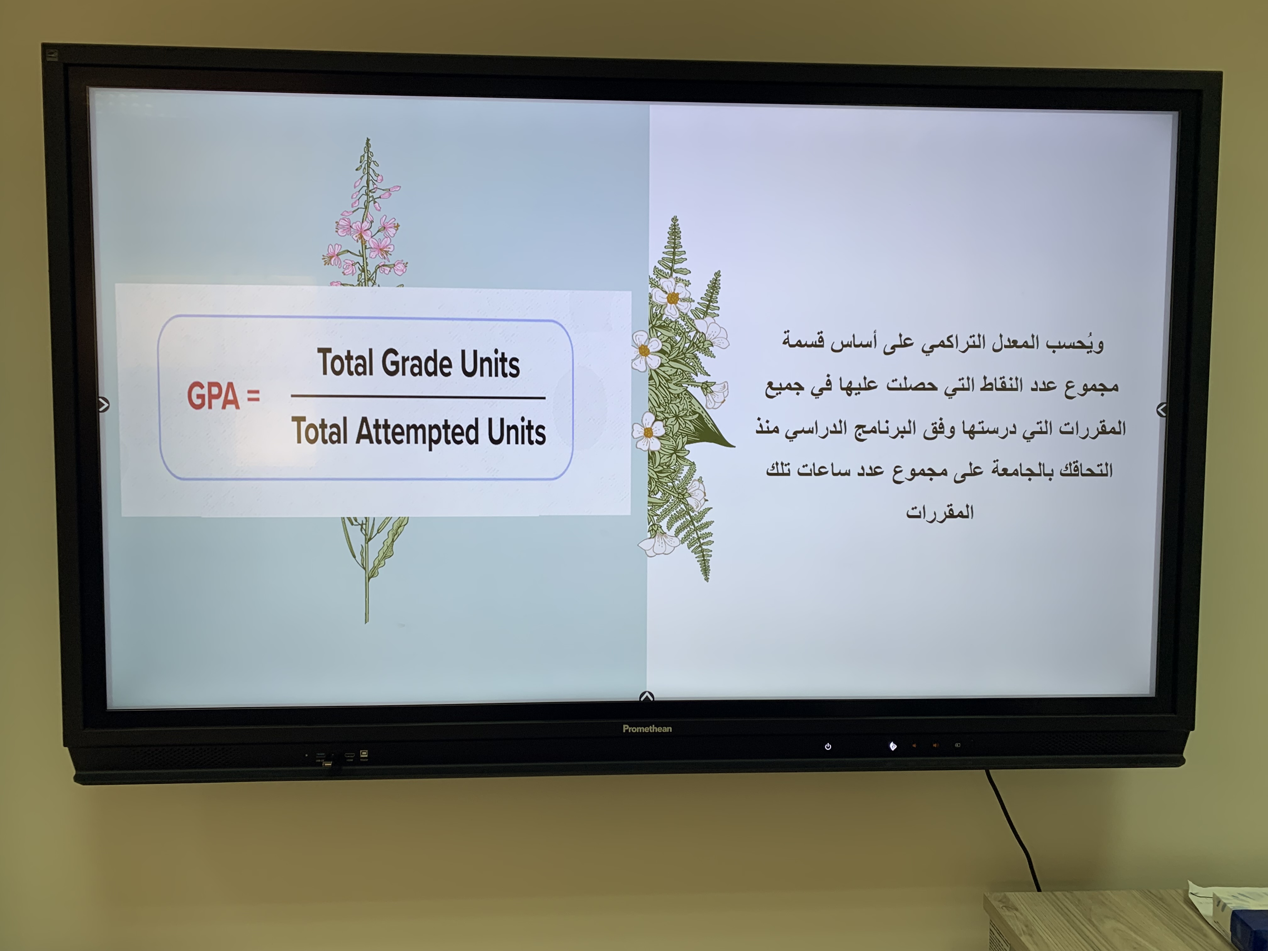 Dr Najla Elsayed Ibrahim began the workshop on (27-10-1445) with a welcome paragraph to the female students and employees of the institution who also attended, the objectives and importance of the workshop were explained and also the importance of GPA in their upcoming future were also enlighten. Dr Najala began with an extensive explanation about the grade point average.