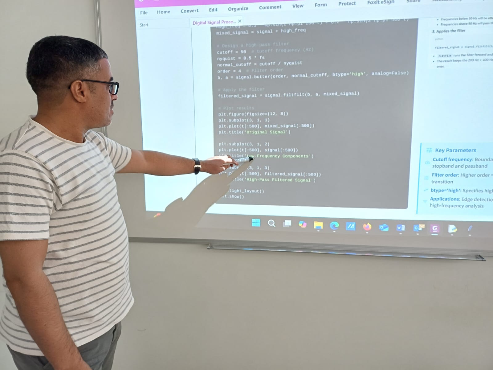 وقد تمكّن الطلبة من اكتساب معارف تقنية متقدمة حول أساليب التحليل الرقمي، وتصميم الفلاتر، واستخدام مكتبات بايثون المتخصصة في معالجة الإشارات، مما ساهم في تعزيز قدراتهم البحثية والتطبيقية استعدادًا لسوق العمل ومشاريعهم المستقبلية.