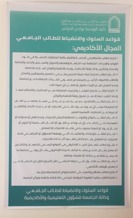 • قواعد السلوك والانضباط للطالب الجامعي بجامعة الأمير سطام.