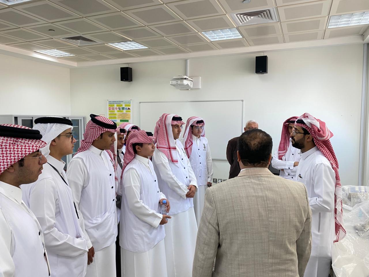 وابتدأت الزيارة بكلمة ترحيبية من قبل رئيس قسم الهندسة الكهربائية بوادي الدواسر د. عبدالله الحربي، ومن ثم قدم رئيس القسم ومشرف السنة التحضيرية د. أبي يونس، ود. أحمد جلال من قسم الهندسة الميكانيكية شرحًا عن البرامج الأكاديمية والتخصصات العلمية، فيما تولّى رئيس اللجنة د. فيصل الدوسري التعريف بالمختبرات والأنشطة التعليمية المختلفة.